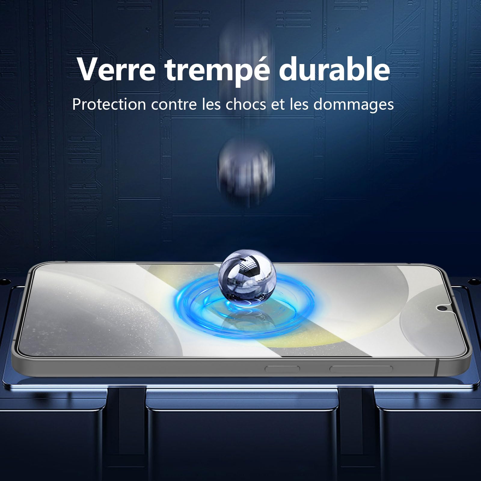 - Lot de 3 Verres Trempés pour Samsung Galaxy S24. Dureté 9H, résistance aux raillures. Réponse tactile améliorée et super transparent.