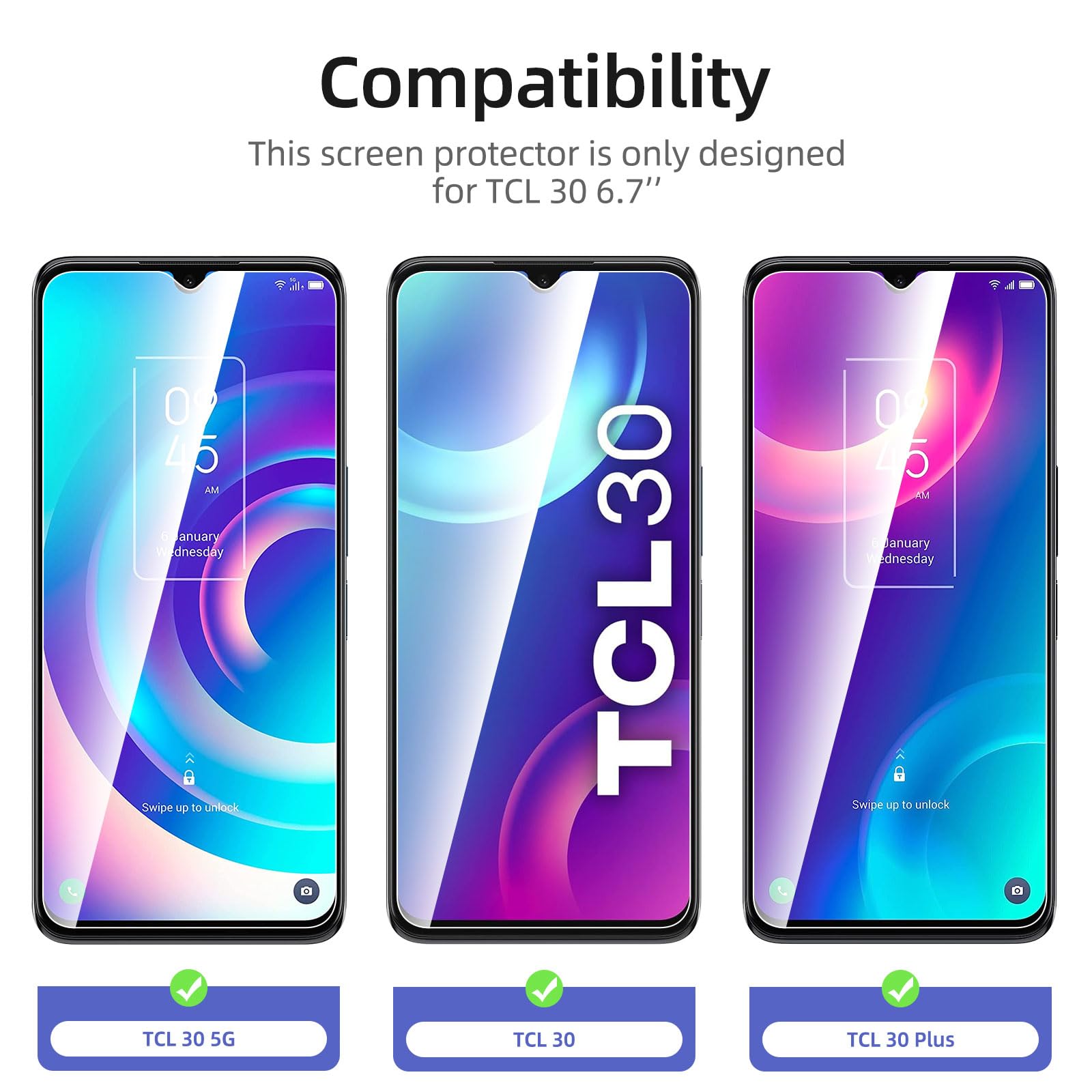 - Lot de 3 Verre Trempé TCL 30 5G/TCL 30/TCL 30 Plus. Très grande dureté: résiste aux égratignures jusqu’à 9H. Haute-réponse et haute transparence.