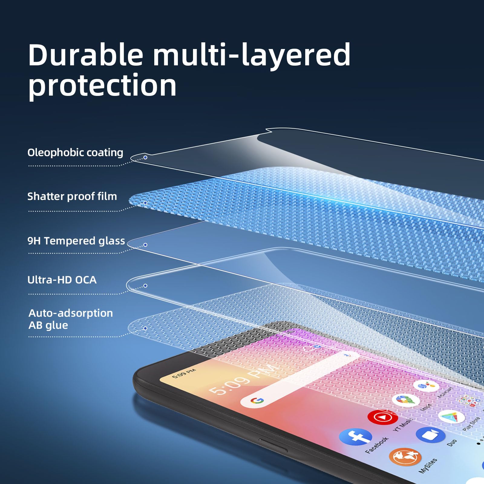 - Installation sans poussière, sans empreintes digitales, facile d’une simple pression, sans bulles.Oléophobe: il a un revêtement oléophobique qui empêche les empreintes digitales et d’autres contaminants et rend le film facile à nettoyer.
