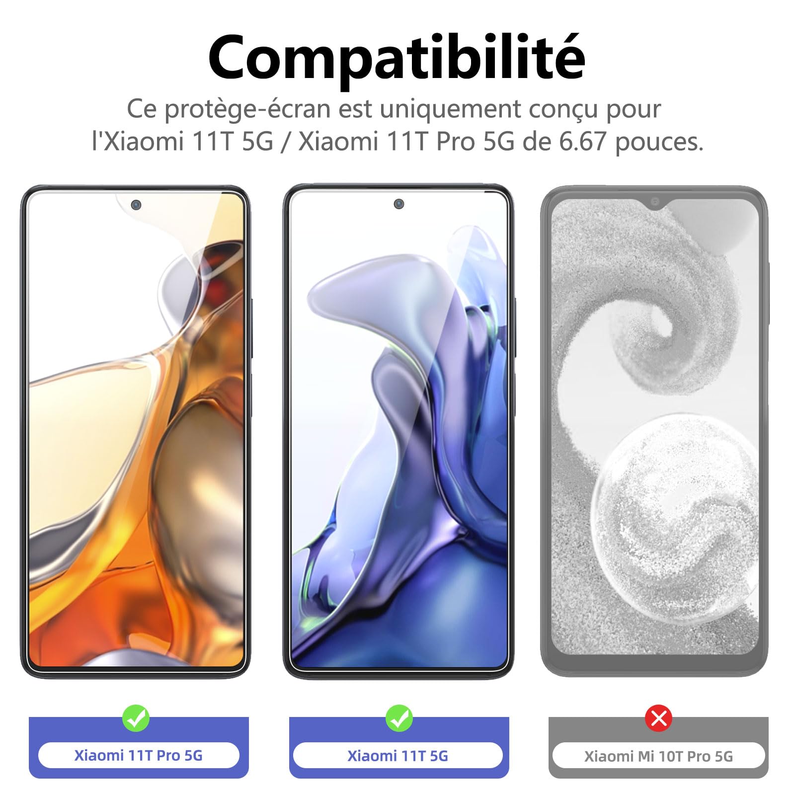 - Lot de 3 Verre Trempé Xiaomi 11T 5G / Xiaomi 11T Pro 5G. Très grande dureté: résiste aux égratignures jusqu’à 9H. Haute-réponse et haute transparence.
