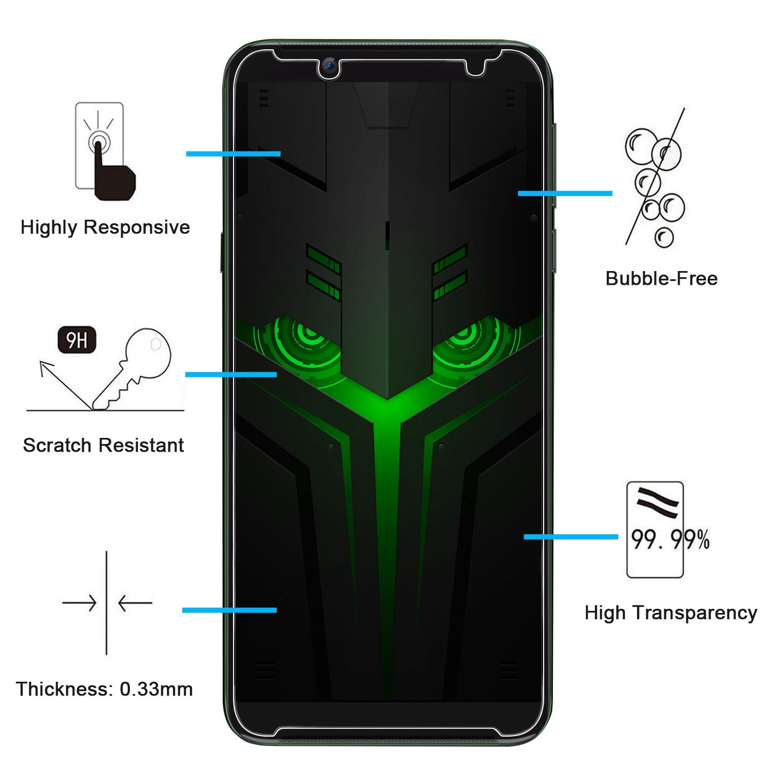 - Lot de 3 Verre Trempé Xiaomi Black Shark Helo, très grande dureté: résiste aux égratinures jusqu’à 9H (plus dur qu’un couteau). Haute-réponse et une grande transparence.