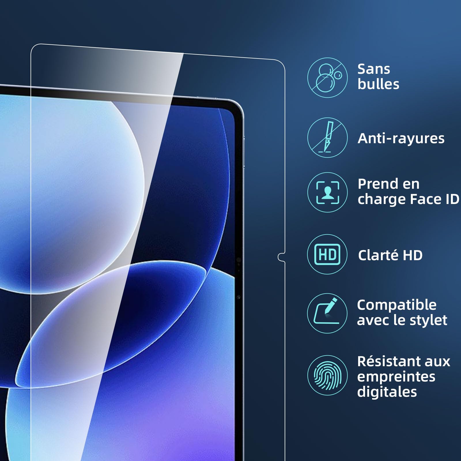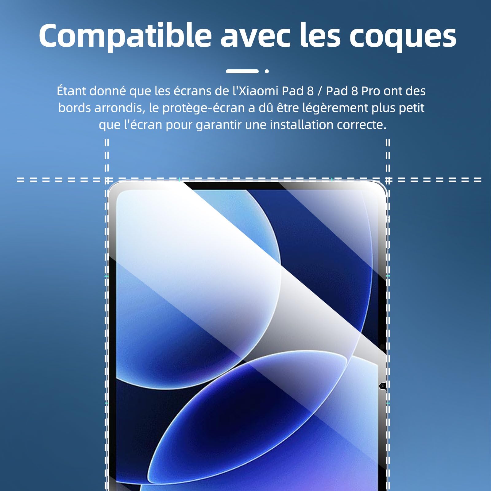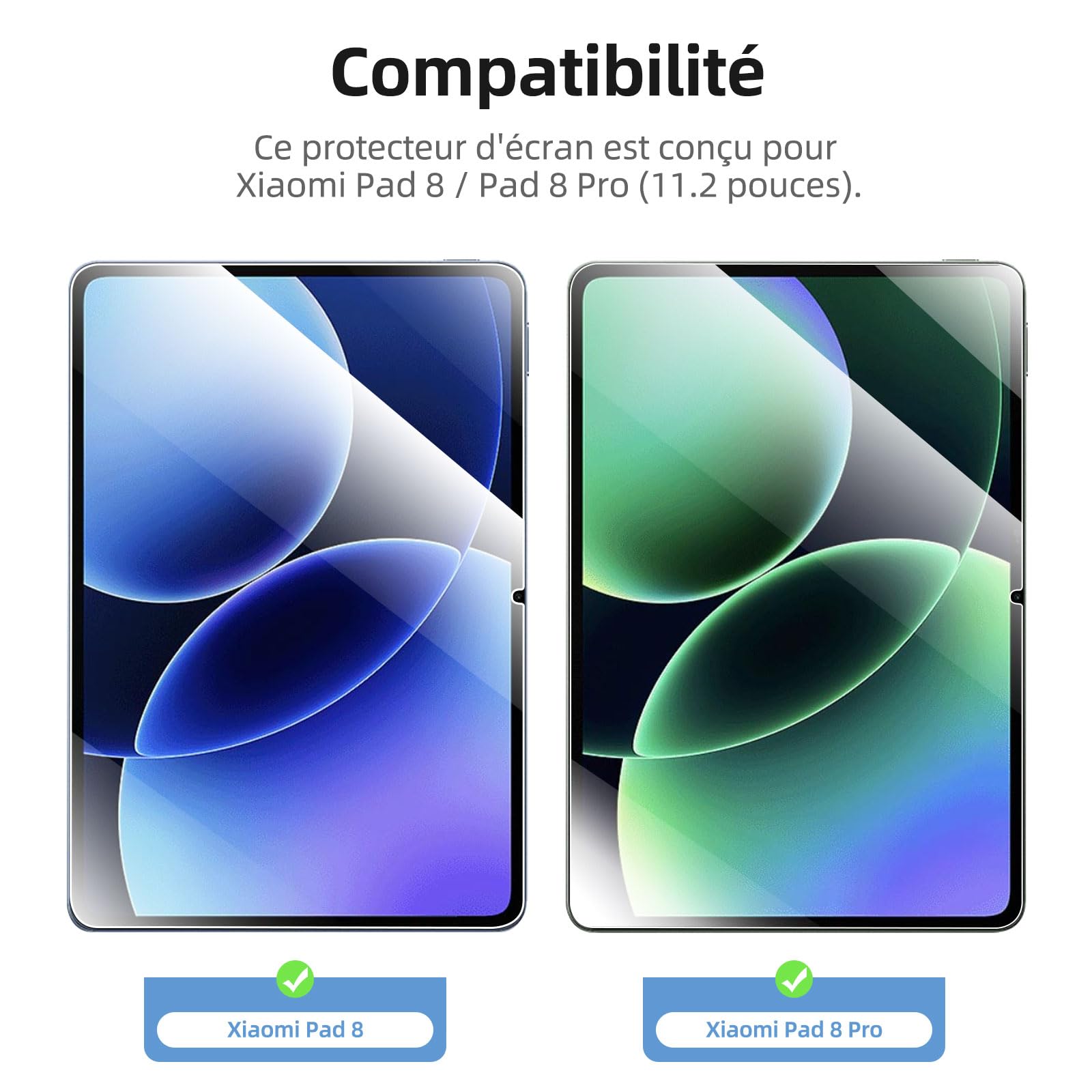 - Lot de 2 Verres Trempés pour Xiaomi Pad 8, Pad 8 Pro. Dureté 9H (plus dur qu’un couteau), résistance aux raillures. Réponse tactile améliorée et super transparent.