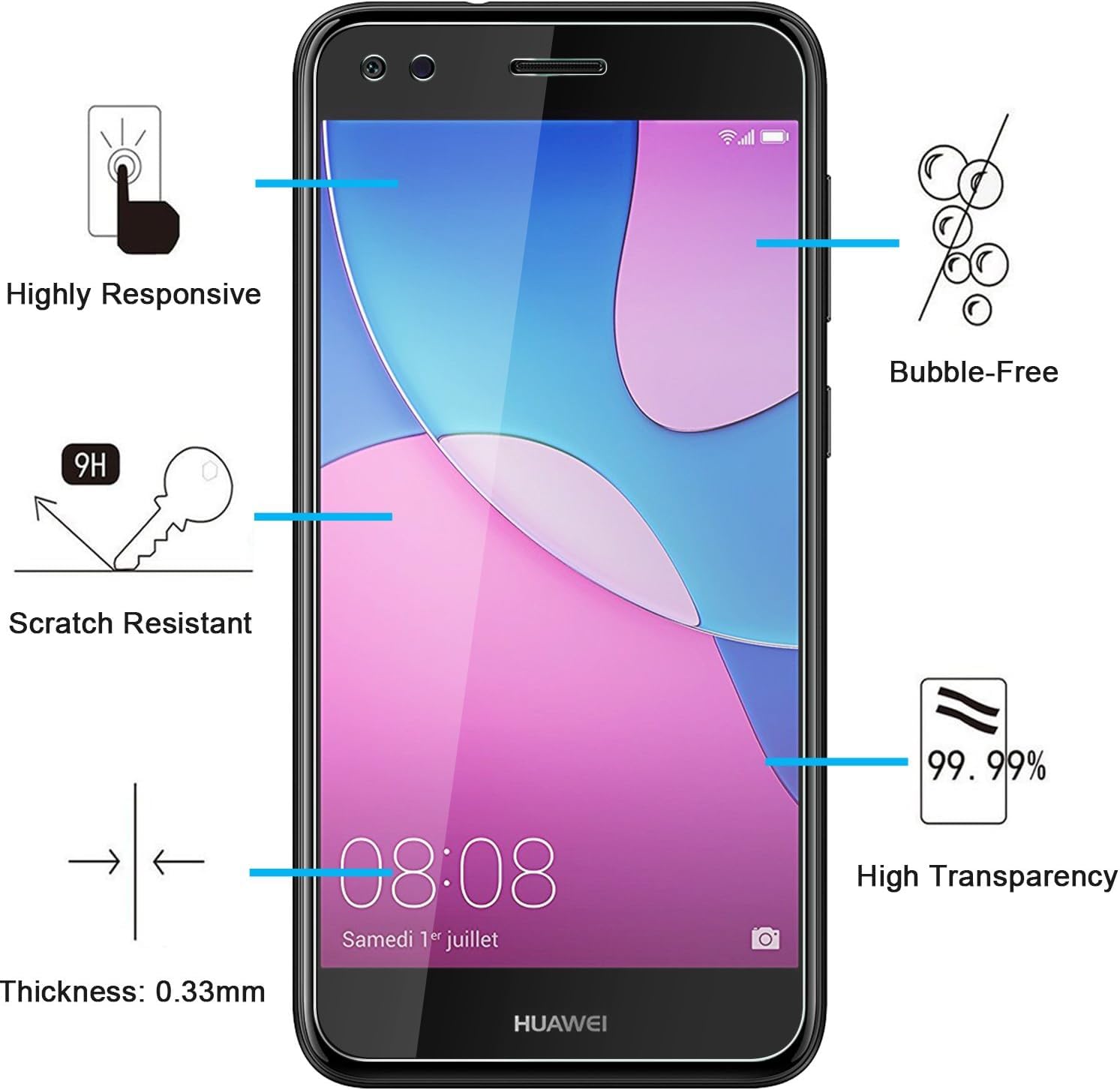 Ne compromettez pas la sensibilité tactile de votre Huawei Y6 Pro 2017. Notre protection d’écran est conçue pour maintenir une réponse tactile rapide et précise, vous offrant une expérience utilisateur fluide et agréable.